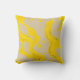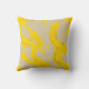 This throw pillow features a flowing pattern of organic yellow swirls layered over soft beige and subtle gray accents, creating a smooth, contemporary abstract aesthetic.