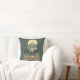 O travesseiro decorativo na moda apresenta uma vinheta retrorreflectora do Parque Nacional de Yosemite, na Califórnia, sobre o fundo verde da floresta desbotada.