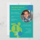 Um convite feito sob encomenda do aniversário do cartão com fotos com o hibiscus havaiano colorido e o Honu feliz (tartaruga de mar). Este cartão é totalmente customizável com sua foto do fraseio e da criança. Aperfeiçoe para um tropical, um luau ou um partido havaiano!