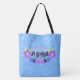Coroa azul e violeta. Flores de cartoon divertidas, femininas e caprichosas ajudam a enviar a mensagem de que Aloha significa olá! Este design vem de várias maneiras coloridas. Esta bolsa de praia é reversível.