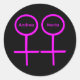Esta maravilhosa folha de adesivos redondos foi projetada para lésbicas. Ele apresenta dois símbolos femininos cor-de-rosa, lado a lado. O plano de fundo é preto e existe um dentro de texto rosa personalizável para cada um dos símbolos para colocar nomes. Agora você pode selar todos os seus envelopes com este adesivo adorável para dar a sua correspondência um toque pessoal, ou colocá-los em presentes para seus amigos lésbicos como etiquetas de presentes personalizadas.