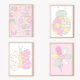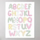 A combination of soft, quilt inspired designs (with flowers, hearts, and plaid), on letters of the alphabet create this cute, bedroom, wall decor art print. The background is white, while the letters consist of various patterns in shades of green, yellow, white, and pink. This art print features a signature by me, the artist.