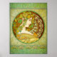 Alphonse Mucha Laurel poster. Poster litográfico de 1901. O artista checo Alphonse Mucha era conhecido por suas alegóricas obras. Laurel é uma pintura que apresenta uma bela jovem morena tirada em vinho. Ela olha em frente e veste uma rosa amarela no peito. O poster é intricadamente ornamentado com folhas, azulejos e setas de marijuas interligadas. Um presente de excelente para fãs de Mucha, posters de art nouveau e impressões de vintage.