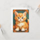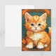 Cartão com um gato laranja no estilo de Alphonse Mucha! Este gatinho adorável com olhos verdes é enquadrado pelas folhas do outono. Um presente maravilhoso para amantes de gatos e colecionadores de Art Nouveau!