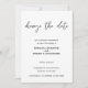 Cartão de mudança de data de casamento minimalista elegante preto e branco manuscrito.