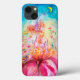 Fada de flores elegante, colorida e vibrante em azul cintilante, lacre, fúcsia, cores amarelas e faíscas douradas à luz da lua.