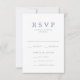 Nossos cartões de resposta ao casamento "Amado" de chico apresentam uma simples paleta de cores azul e branca de slate que é perfeita para casamentos em qualquer época do ano. O reverso das elegantes cartas RSVP de casamento apresenta um design de padrão tradicional ligado. Personalize os cartões de resposta do casamento de na moda com seus detalhes de casamento personalizados e opções de janto!