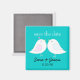 Esta Imã salve a data tem um gráfico fofo de pássaros amorosos encarando uns aos outros e um fundo aqua teal. Isso pode ser personalizado com seu texto e um fundo colorido diferente escolhendo o botão personalizá-lo e editá-lo.
