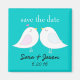 Esta Imã salve a data tem um gráfico fofo de pássaros amorosos encarando uns aos outros e um fundo aqua teal. Isso pode ser personalizado com seu texto e um fundo colorido diferente escolhendo o botão personalizá-lo e editá-lo.