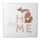 Inscrição marrom de cobre com a forma de Michigan como o "O". Michigan está cheia de marrom-cobre com um coração branco. Mostre seu amor pelo seu estado natal! Design de The Michigander.