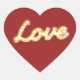 Este adesivo em forma de coração é acentuado com a palavra "LOVE" escrita em luzes de marquee vintage sobre fundo vermelho.