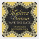 Design fresco e a negrito em trimes decorativos de ouro, amarelo-satírico e preto, antigos. Temas de estilo se adequariam ao Oriente Médio, índio, boêmio, e todos aqueles que buscassem algo diferente, exceto os adesivos de data. Anuncie seu evento especial com este Na moda e um casamento, Noivado e aniversário personalizado exclusivo Salve o adesivo Data. Todo o texto pode ser totalmente personalizado, incluindo estilo de fonte e cores. Como minhas designs e Arte?