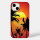 Amazing sunset with palms on tropical beach