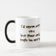 Caneca de boa qualidade, bom tamanho, não parece ser aquela louça que trinca ou descasca. Com os cuidados necessários, irá ter boa durabilidade. Antes de se colocar a bebida quente, ela fica preta, mas numa cor bem brilhante. Meu namorado é DJ e encomendei esta caneca pra um café da manhã com o pessoal da equipe! Sei q será o maior sucesso...em breve sei q vão pedir pra eu encomendar pra eles, e penso em fazer com o nome da empresa também. A caneca é muito legal, a coisa da trasmutação...mas o q não ficou muito legal foi a impressão da imagem da foto, não ficou como a foto q enviei...sei q mandei uma foto q é uma sombra, mas se as cores q estão em voltam aparecessem, ficaria bom. Na parte da frente ficou boa, mas atrás dele, a iluminação azul não saiu, ficando assim muito escuro, e não dá pra ver q é a sombra de uma pessoa. Se a Zazzle tivesse me enviado um e-mail dizendo q isso aconteceria, eu teria enviado uma foto mais clara, mas como a imagem de teste q tenho no site está nítida, pensei q fosse ficar assim. O chato q a caneca é presente, e a pessoa q ganhou, não consegue se ver na foto. Ficou sem propósito no final das contas. =(