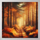 Amber Forest Path with Sunbeams – Autumn Poster