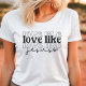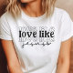 Compartilhe uma mensagem de amor e fé com nossa camiseta Ame Como Jesus. Com a frase inspiradora "Ame Como Jesus" em letras negritas e elegantes, esta camiseta é perfeita para quem deseja expressar seu compromisso em viver uma vida cheia de amor e compaixão. Ideal para uso casual ou como um presente significativo para amigos e familiares que prezam sua fé.