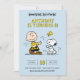 Celebre o seu pequeno completando dois anos com este convite de aniversário absolutamente encantador do Peanuts! O design apresenta uma ilustração icônica de Charlie Brown e Snoopy dançando alegremente, com o Woodstock flutuando acima, contra um fundo azul claro alegre. O título "QUE ABSURDO, VAMOS FESTEJAR!!" define um tom divertido, clássico e memorável. Este cartão é totalmente personalizável para incluir o nome da sua criança, detalhes da festa e informações de RSVP para um segundo aniversário inesquecível!