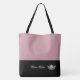 Este saco de totas de tamanho grande é criado no estilo de bloco de cores Mauve e Black com uma coroa prateada e texto personalizado para o seu pageant/name/title personalizado. Texto e gráficos frente e verso. Personalize este item e altere o texto para o seu.