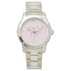 Este Pageant infundiu o relógio de pulseira das mulheres do Silver às 12:00, uma pequena coroa colorida de Cinza prateada, uma face rosa pincelada com marcas de tempo de Cinza e seus três monogramas personalizados mostrados no roteiro de rico. Tem um título de concurso pré-formatado por baixo dos monogramas à espera da sua personalização. Personalize ainda mais este relógio e escolha um estilo, cores diferentes, etc.