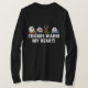 Neves e renas decoram esta design de feriado fofa em T-shirts de férias, capuzes e camisas de suor que agradam a quem ama homens de neve. O texto diz "Amigos Querem Meu Coração!".