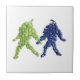Azulejo decorativo Amigos de Uva. Um par de cachos de uva, um verde e um roxo, caminham juntos e companheiradamente. O caule do grupo verde parece estar olhando para o grupo roxo. O caule de uva roxo retorna ansiosamente a vista. Esta ilustração cria uma cena balbuciosa com as características humanas de amizade, amor, bondade e tolerância enquanto seus passos bustigantes os carregares para frente juntos.