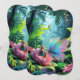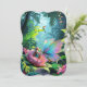 Uma menina e uma borboleta com asas iridescentes tocadas numa flor gigante numa selva exuberante, acompanhadas por um tucano colorido. Folhas grandes e flores vibrantes as cercam, criando uma cena mágica e caprichosa. Digital Art Photoshop CS6