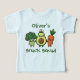 Esta camiseta personalizada e encantadora mostra três personagens vegetais adoráveis de mãos dadas. Um brócolis sorridente, um abacate feliz veste o chapéu de um capitão, e uma cenoura alegre fica ao seu lado, com a frase "Esquadrão de Snack".