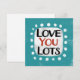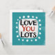 "Love You Lots" é um design de texto divertido com uma forma de sotaque branca cercado por pontos brancos texturizados.