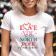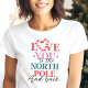 Mostre seu espírito natalino e amor com esta adorável camiseta "Te Amo do Polo Norte e de Volta"! Com um coração de bengala e tipografia colorida e festiva, este design é perfeito para quem gosta de espalhar alegria natalina com uma mensagem sincera. Seja você vestindo-a para reuniões de Natal ou dando-a como um presente atencioso, esta camiseta traz um toque alegre e amoroso para a temporada. Seu design divertido e sentimento caloroso tornam-na indispensável para quem ama a magia do Natal.