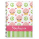 Este cobrir bonito e saboroso do caderno espiral do cupcake do chocolate dos cupcakes do amor da paz com a crosta de gelo cor-de-rosa e polvilha em um cor-de-rosa e o símbolo de paz e o fundo verdes do coração podem ser personalizados com seu nome no design cor-de-rosa da fita. Estes divertimento e caderno feito sob encomenda feminino podem ser usados como um jornal ou um diário também, e é ingualmente grande para fontes de escritório domiciliário de volta ao uso da escola. © Chrissy H. Estúdio dos trabalhos de arte, LLC. Todos os direitos reservados.