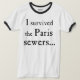 A parte dianteira da camisa lê, "mim sobreviveu aos esgotos de Paris…" quando traseiro lê, "… nenhuns obrigados a esse Pontmercy mau caçoam." No Les novo Misérables de Victor Hugo, o protagonista Jean Valjean salvar o Mário ferido Pontmercy levando o através dos esgotos, mas é preferencialmente ressentido sobre o processo inteiro, especialmente porque Mário está no amor com filha de Valjean, e Valjean é detesta para perdê-la.