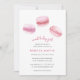 Oh la la! Estes doces convites para chuveiros de bebês apresentam um trio de biscoitos cor-de-água cor-de-rosa pastel cor-de-rosa macarrão francês, tocando seus detalhes de chá de fraldas embaixo em letras cor-de-rosa e cinza. Uma escolha encantadora para sobremesa, chás de fraldas de temas franceses ou parisienses para garotas doces a caminho. Convites inverso a rosca sólida.