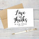 Os cartões de agradecimento de casamento "Amor e Agradecimento" modernos apresentam uma paleta de cores preto e branco com uma tipografia de caligrafia manuscrita ousada e divertida, com detalhes de rolos elegantes. Personalize o texto do monograma personalizado casual, mas elegante, para o seu dia de casamento. A redação personalizada no interior pode ser removida se você preferir uma nota manuscrita.
