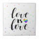 Este trabalho de arte de texto de roteiro apresenta a frase "Amor é Amor" com corações ao redor.