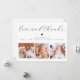 Crie seu próprio cartão de colagem de fotos de agradecimento para o chá de bebê para agradecer amigos e familiares por receberem seu pequeno! O design elegante e minimalista apresenta uma colagem de três fotos personalizadas na parte inferior e tipografia elegante na parte superior com sua mensagem de "amor e agradecimento" em uma fonte sofisticada e as informações do seu bebê. Há também um pequeno coração fofo. No verso, há uma mensagem personalizável com seus nomes. Torne-o único substituindo o texto e as imagens clicando no botão "Personalizar". Este doce cartão de anúncio de nascimento e agradecimento com colagem de 3 fotos será um belo souvenir para sua família e amigos!