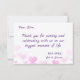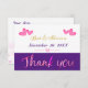 Expresse sua gratidão com cartões de agradecimentos de casamento personalizado. Como um casal recem casados entusiasmado, é uma forma excelente de dizer obrigados aos seus amigos e familiares por celebrarem com você o momento mais feliz da sua vida. Design frontal: O fundo é branco, uma opção para escolher uma combinação de duas cores com preto, marinho azul ou roxo como sua escolha de cor de fundo. Ele foi projetado com palavras de agradecimento baseadas em aquarela. Acima dele, há 4 formas de corações de amor vermelho-rosado. São fornecidos dois espaços reservados de texto; isso permite substituir o nome da noiva e do noivo, bem como editar a data do evento de casamento. Para complementar seu design, uma forma cardíaca pitada-púrpura leve é colocada abaixo desses espaços reservados. Todas as suas formas de amor são ajustáveis; redimensione ou mova a sua posição para o seu gosto. Design de trás : Todo o fundo é branco e apresenta a forma de amor de um boque pinto-roxo na parte inferior. A personalização é habilitada, simplesmente mude o nome do destinatário, artesanato suas melhores mensagens no espaço reservado de texto fornecido, substitua a aprovação e os nomes de recém-casados.