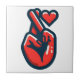 The image displays a stylized graphic of a hand making a “Korean heart” gesture, which is formed by crossing the thumb and index finger to create a small heart shape above them. The graphic uses bold red and blue colors with white highlights, giving it a vibrant and modern appearance. This gesture is often used to express love and affection in Korean culture and has become popular worldwide through Korean pop culture. It’s interesting because it showcases how specific cultural expressions of emotion can become global symbols through media influence.