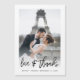 Esta placa apresenta " love & obrigados" em letras portáteis por cima de uma fotografia.