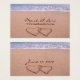 Dois corações desenhados na areia (os corações estão entrelaçados) com espuma de praia ao fundo. Excelente para casamentos ou festas com tema de praia ou destino. O amor na modelo de praia pode ser usado para receber informações, site de casamento ou outro cartão.