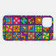 Capa de telefone celular viva e colorida contendo blocos de colcha tradicionais desenhados à mão em cores brilhantes e alegres.