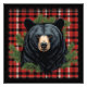 Um belo e majestoso Norte Urso Negro colocado em um fundo vermelho, preto e branco de xadrez rústico. O urso com ele é forte, elegante e rico pelo preto é o ponto focal desta design. A expressão do Urso transmite uma sensação de confiança e serenidade que aumenta o encanto rústico, contrastando lindamente com o pano de fundo da xadrez. Este campo inspirado na design, melhora a beleza natural do urso e seria perfeito para qualquer decoração caseira ou caseira.