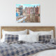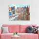 An illustration from a photograph of Amsterdam canal side houses printed on a canvas.