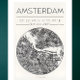 A minimalist city map poster of Amsterdam featuring clean line art and precise geographic coordinates.