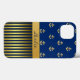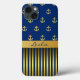 Na moda Samsung Nota 4 feita com gráficos de âncoras douradas sobre fundo azul, na metade superior do gabinete. O fundo do gabinete tem um padrão de riscas douradas e azuis, com uma banda dourada, ao longo do meio. Personalize o texto azul escuro, na banda do ouro, para você mesmo ou como uma ideia de presente de excelente.
