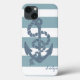 Stripes náuticas Anchor praia oceano cinzento azul e branco falso nome personalizado