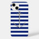 Um cromo como um design de ancoragem alto em um decor de listras azuis marinho. Um presente náutico moderno.