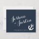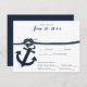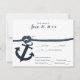 Anchor e design de corda de 4,25 x 5,5 tamanho de cartão rsvp marinho azul e branco escuro, design de casamento, perfeito para uma praia de destino ou um casamento de cruzeiro.