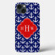 Âncoras náuticas brancas sobre fundo azul Marinho, monograma inicial do formato vermelho Quatrefoil 3 Personalize-o com seu monograma, nome ou outro texto inicial de 3. Você também pode alterar a fonte, ajustar o tamanho e a cor da fonte, mover o texto para ajustar o espaçamento da letra do monograma, etc. Observe que este é um design gráfico digitalmente criado que é transferido para o produto subjacente. O design não contém fita, etiquetas, metais, gravuras, etc. Precisa deste padrão em outras cores ou designs? Basta soltar um e-mail e nos avisar!