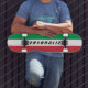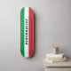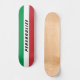 Andar de skate de nome personalizado de bandeira italiana. design de conselho de madeira legal para rapazes e raparigas. Boa ideia de presente de aniversário para crianças. Personalize com nome personalizado ou letras monográficas. Incrível ideia de presente de aniversário para crianças, filhos, neto, sobrinho, primo, filha, irmã, irmão, amigos etc. Modelo de tipografia moderna. Bandeira do país Tricolore da Itália design com modelo de tipografia moderna.
