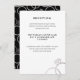 Um monograma moderno fica glamoroso com anéis de casamento de prata entrelaçados e um texto personalizado, tornando este um convite de casamento novo clássico com texto simplificado em preto e branco. Personalize todo o texto deste cartão de recepção de convite e ajude a direcionar seus convidados para um local secundário ou personalize-o para qualquer outra necessidade que você possa ter, como informações de hotel ou site.